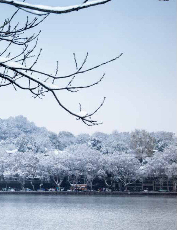 晚明人张岱的小品文名篇《湖心亭看雪》相信接受过九年义务教育的大家并不陌生。文章只有159字,叙事简洁利落,行文精炼,作为一篇景物游记,关于雪后西湖景色的描写只寥寥几笔,一幅冬日湖景长卷已然绘就,“雾凇沆砀,天与云与山与水,上下一白” “长堤一痕” “湖心亭一点”都成为文学史上绝美意象。作者深夜独往湖心亭看雪,却偶遇亭内早有悠然赏雪的金陵客,几人畅快同饮,乘兴而归。作者不忘在结尾处借船工之口喃喃自语:“莫说相公痴,更有痴似相公者。”