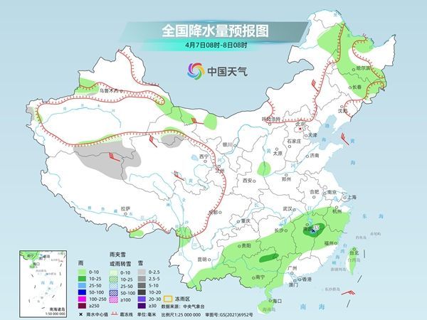 昨天,我国北方依然维持着干燥多风的天气格局,南方的阴雨天气则明显增多,此外,青藏高原东部等地出现了雨雪天气。监测显示,西藏东北部、川西高原中北部及内蒙古东部、黑龙江西北部等地部分地区出现小到中雪或雨夹雪,西藏昌都和四川甘孜局地降水量10~14毫米;西藏东南部、四川盆地西南部及吉林南部、辽宁中部、福建南部、广东东北部等地部分地区出现中雨,局地大雨。